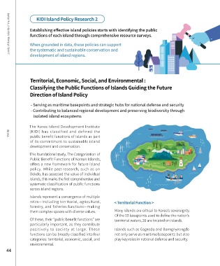 Islands of Korea, Islands of the World Establishing effective island policies starts with identifying the public < Economic Function > and anthropology. The calm and quiet of islands R&D Station