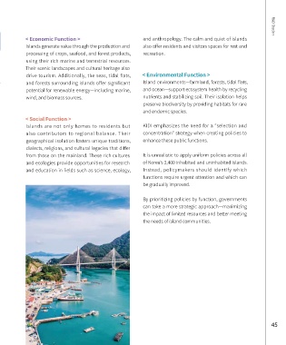 Islands of Korea, Islands of the World Establishing effective island policies starts with identifying the public < Economic Function > and anthropology. The calm and quiet of islands R&D Station